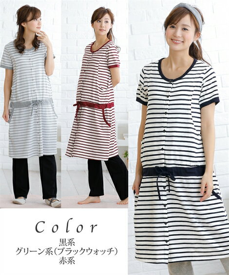 部屋着としてはもちろん、パジャマとしても使えます◎お尻をすっぽり隠す長めの丈と前ボタン開きで、検診にも便利です。