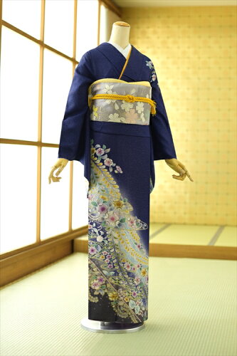 ■0532-39-7660 標準サイズ 身長・・・160m〜178cm位 洋服サイズ・・・13号〜17号位まで 商品説明 ラメ入りの紺地に華麗なコントラストの辻が花文様が 際立ちしゃれ感が漂う逸品の訪問着です。